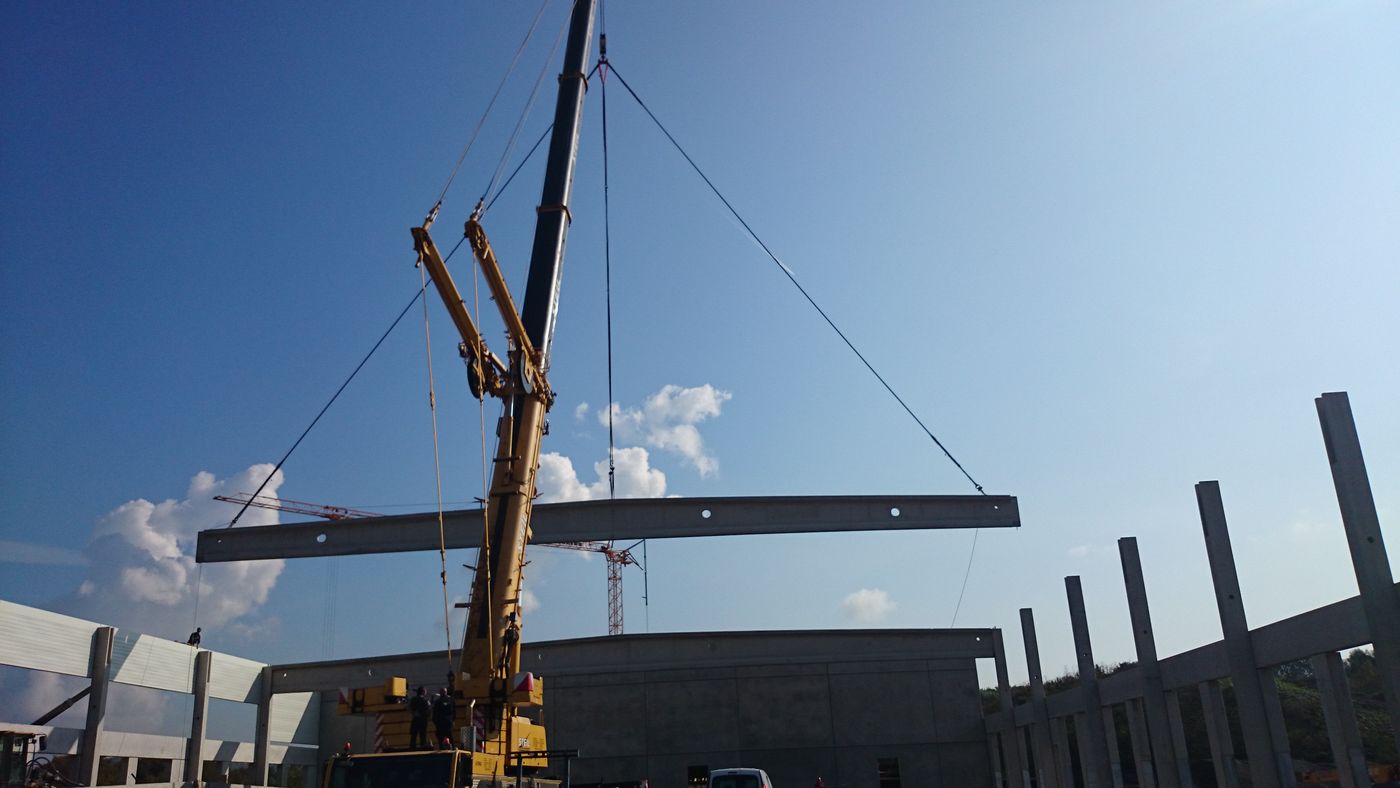Skladová hala-dodávka střešních vazníků délky 40m